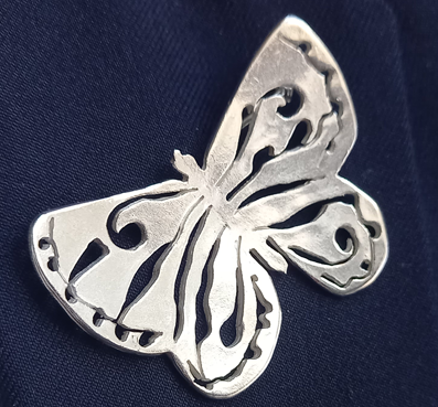 Keväällä 2025 Raija Äärin suunnittelema ja Aki Suutarin toteuttama Sinisiipi -koru sopii kaiken ikäisille.